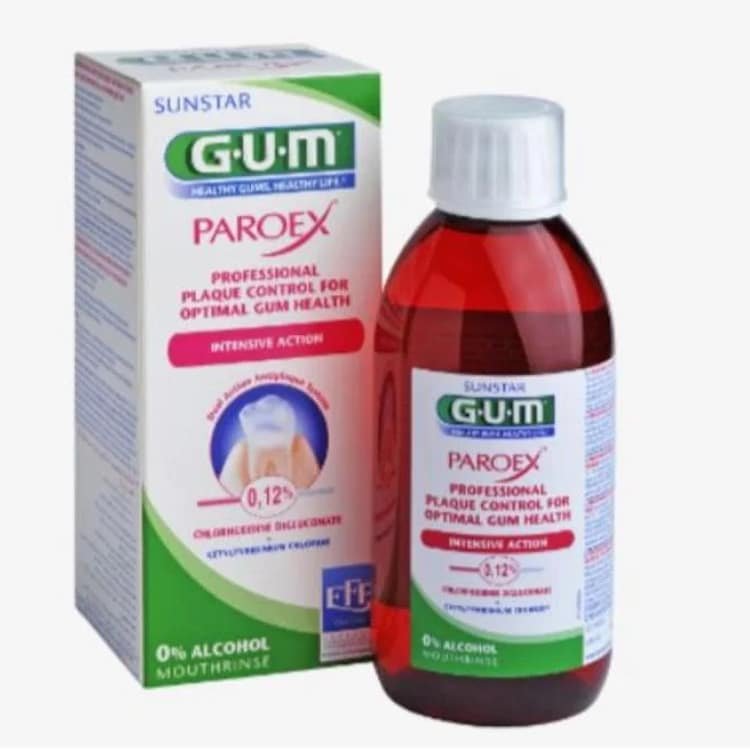 The GUM PAROEX range is designed to help your gums return to or maintain good health. It not only treats existing plaque but also prevents further problems from developing by preventing the buildup of new plaque. GUM PAROEX Intensive 0.12% mouthwash is a particularly good choice for the postoperative period or after tooth extraction.