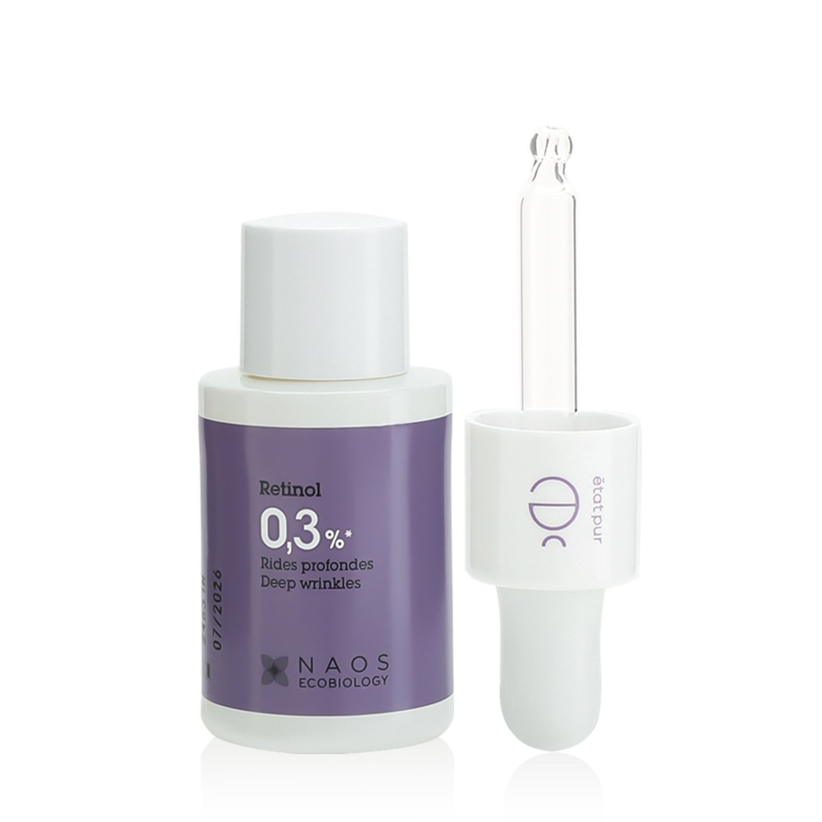 سيروم ريتينول من إيتات بور بيور أكتيف بتركيز 0.3% هو زيت جاف يعمل على جميع علامات الشيخوخة، حيث يقلل التجاعيد بفضل قدرته على تحفيز إنتاج الكولاجين، مما يجعله فعالًا في علاج التجاعيد العميقة وفقدان مرونة البشرة.