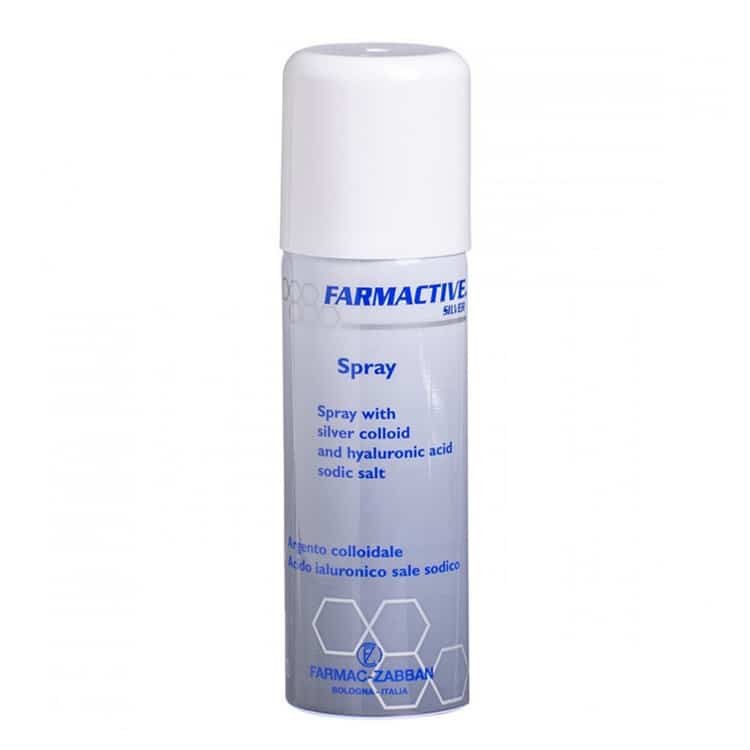 يتوفر FARMACTIVE Silver على شكل رذاذ يطلق مسحوقًا يحتوي على الفضة الغروية مع مكونات أخرى لمنع التلوث الميكروبي وخلق بيئة مواتية للشفاء الطبيعي للجروح والحروق.
