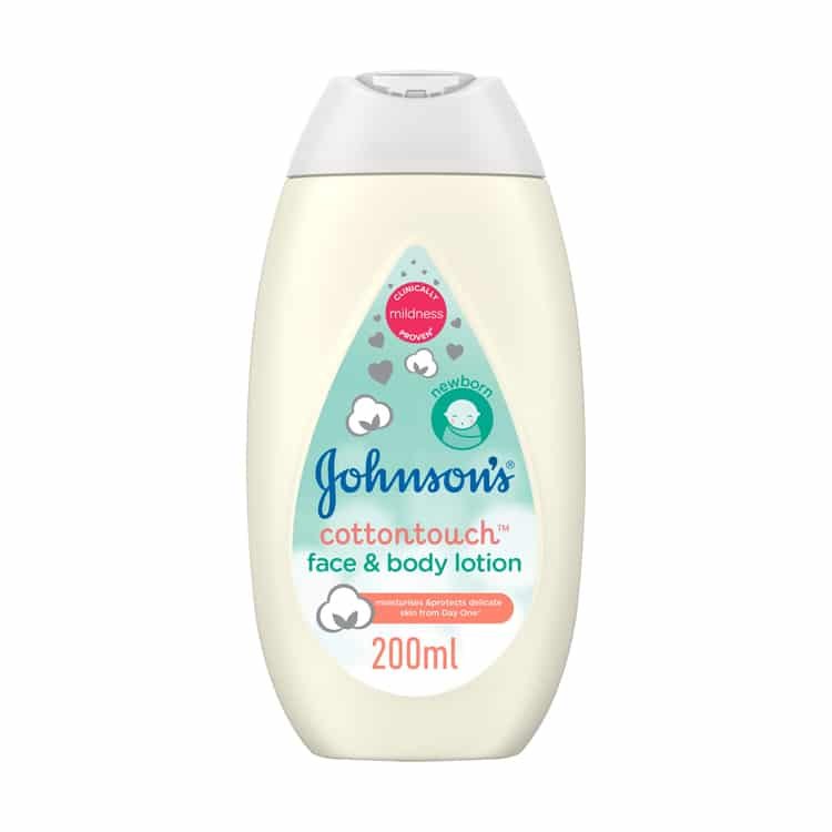 Johnson’s Baby Cottontouch Face & Body Lotion designed for newborn’s sensitive skin, moisturizes and protects delicate. Gentle formula made with real cotton
