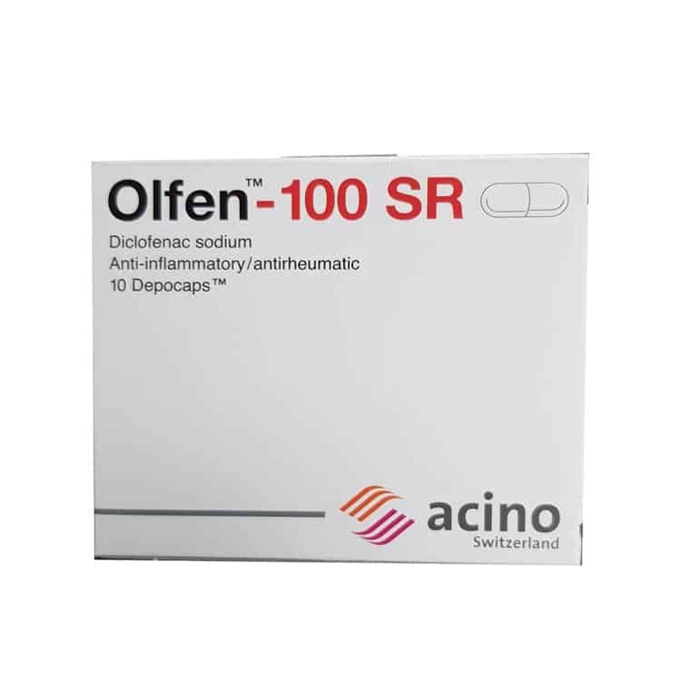 Olfen 100 SR Depocaps Capsule is used for Back pain, Sprains and strains, Soft tissue sports injuries, Tendonitis, Osteoarthritis, Rheumatoid arthritis, Bone and joint surgery, Acute gout, Ankylosing spondylitis, Frozen shoulder. Dislocations and fractures, Dental and minor surgery and other conditions.