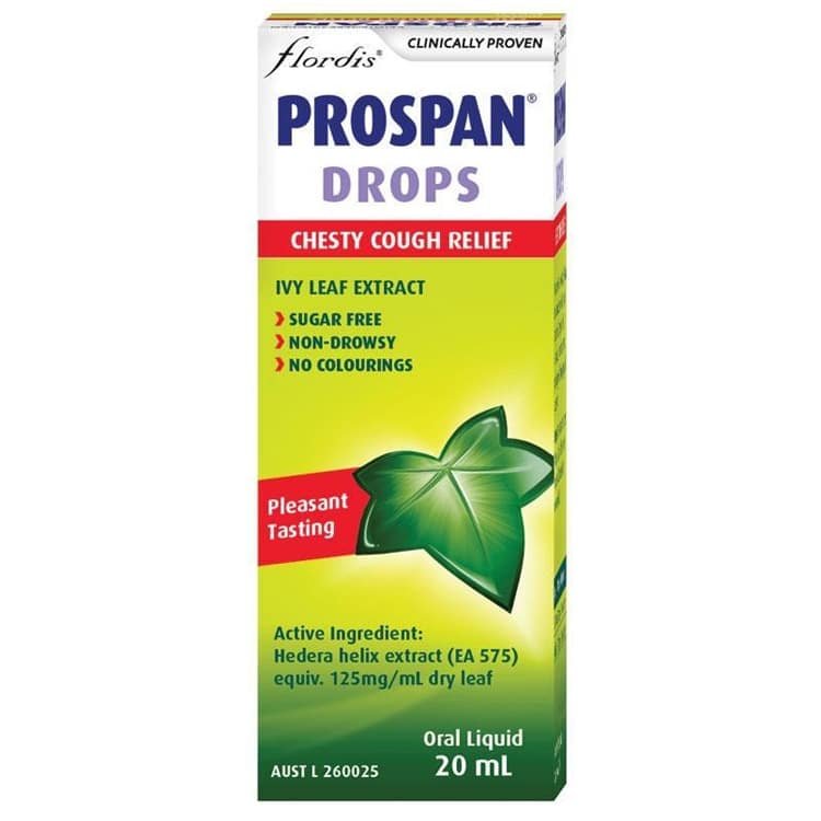 Prospan Infant Cough Drops for chesty cough relief. Prospan’s ivy leaf extract (hedra helix) provides proven cough relief. Prospan helps clear mucus form the airways, resulting in reduced coughing. Prospan Cough Drops can be used in infants, children and adults.