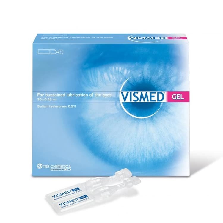 Vismed Gel is a 0.30% hyaluronic acid solution for lubricating the eyes and a longer stay on the ocular surface. Also ideal for contact lens wearers. Helps the healing of superficial keratitis by stimulating rapid cell migration.